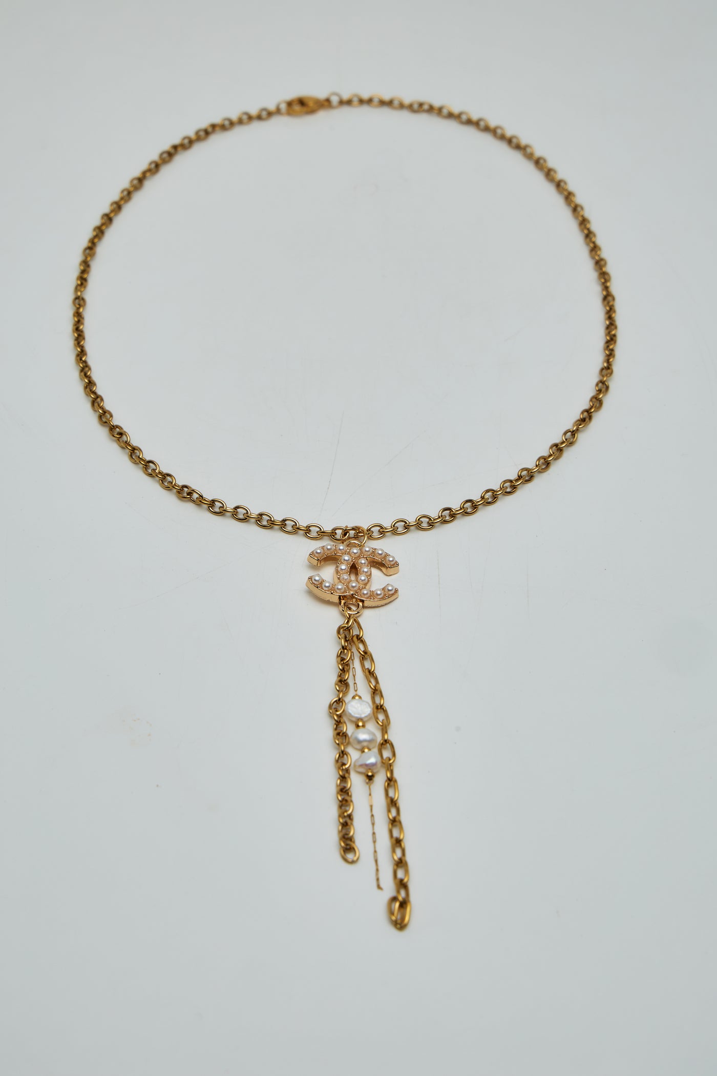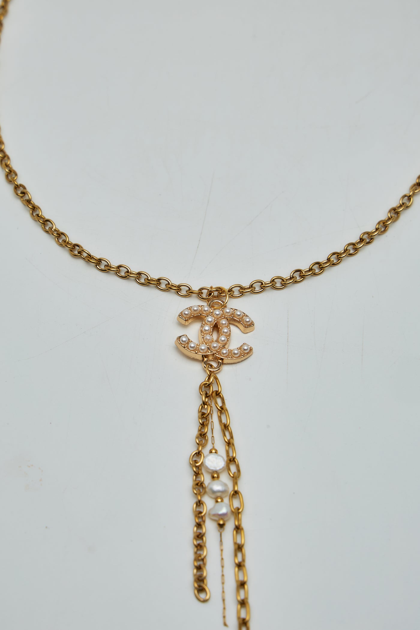 Chaîne en acier inoxydable et perles de culture véritables .
